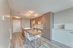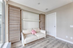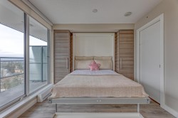 Welcome to University District Alumni Tower by BOSA! This one bedroom condo features BOSA SPACE integrated furniture, including a MURPHY BED with Queen Mattress & Built in Closets. A Chef style kitchen, including a Kitchen Island with a PULLOUT DINING TABLE fits Seating for 8 and Built-in Euro style Appliances & Quartz countertops. The Living Room includes a built in Wall Shelving that includes a floating TV PANEL and a GUEST BED. Euro-style stainless steel appliances. Quartz countertops, expandable dinging table for eight. Balcony with city & Mount Baker views. Exercise gym, meeting room, lounge and rooftop garden. 1 parking & 1 locker. Close to all amenities; malls, SkyTrain, public library, City Centre, SFU, parks, T&T. Easy to show.