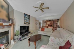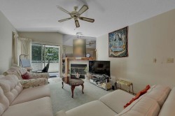 Welcome to the highly sought-after Glenwood Village, a 55+ gated community. This bright and spacious upper corner unit features a generously sized kitchen and family room, large bedrooms, vaulted ceilings, and two inviting decks to enjoy your morning coffee or evening unwind. The primary bedroom includes a large ensuite with a walk-in shower and a spacious walk-in closet. The home is equipped with hot water heating, a newer washer, and updated flooring. Enjoy secure covered parking with visitor parking conveniently nearby. Just a short walk to transit, shopping, cinema, and the library. The well-managed complex offers RV parking, a recreation centre, guest suite, and on-site mailboxes.