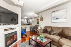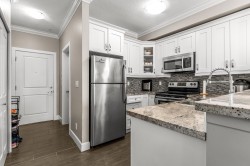 Spacious 2-bedroom, 2-bathroom condo with 2 parking spots in the highly sought-after Edge Building! This bright and inviting unit boasts 9-foot ceilings, crown mouldings, maple cabinets with granite countertops, stainless steel appliances, a full-size washer/dryer, and a cozy living room with a fireplace. Step out onto the balcony and enjoy the Surrey Central views. Located just steps from King George SkyTrain Station and only 2 blocks from Central City Mall, Simon Fraser University, The City Centre Library, Holland Park, and much more. The Edge Building features fantastic amenities, including a GYM ON THE SAME FLOOR, a community room, a guest suite for visitors, playground and a garden area where you can grow your favourite vegetables. OPEN HOUSE JAN 31ST 2PM - 4PM