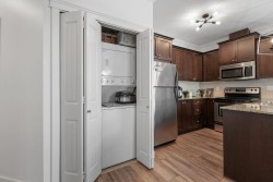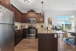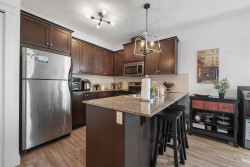 Welcome to the EMACULATE UPDATED CORNER unit. This unit perfectly blends modern living with comfort. Featuring two spacious bedrooms and two well appointed bathrooms, this home is ideal for both relaxation and entertaining. The open-concept layout maximizes natural light, showcasing a stylish kitchen and an inviting living area that flows seamlessly to a private large balcony perfect for you coffee or evening sunset. This unit also comes with 2 LOCKERS! Centrally located as its walking distance to all levels of school, transit and easy hwy access. Book your private viewing today!