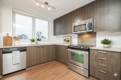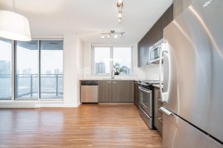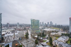 Easy to show. Quick Possession possible. This well-kept, large one-bedroom corner unit boasts an amazing southeast-facing city view. It features stainless steel appliances, in-suite laundry, one parking spot, and one locker. Amenities include a gym, party room, and playground. Rentals are 100% allowed. EV charging station available in the building. The building is conveniently located just steps away from Surrey City Centre, SFU University, Skytrain, and Surrey Central City Shopping Centre. Book your private showing and bring your offer today before it's too late!