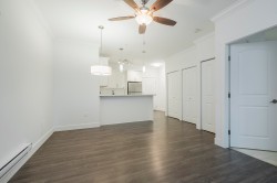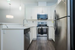 Well-Maintained 1 Bed, 1 Bath Condo in Prime Surrey Location. Welcome to this beautifully updated 1 bedroom, 1 bathroom unit located in the heart of Surrey — just steps away from schools, public transit, shopping, restaurants, and more! Renovated in 2018, this home offers a modern and functional layout perfect for first-time buyers, downsizers, or investors. Enjoy stylish finishes throughout, including granite countertops, crisp white cabinetry, stainless steel appliances, contemporary light fixtures, and an electric fireplace for added comfort. The spacious bedroom provides ample room to relax, while the in-suite laundry adds everyday convenience. Step outside to your private patio — ideal for morning coffee or evening relaxation. Priced to sell — don’t miss out!