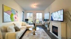 Prescott Commons by Polygon offers prestigious Oxford-style living in South Surrey’s Harvard Gardens. This 3rd-floor, 840 sq ft 2 bed/2 bath + flex home features 9' ceilings, engineered stone countertops, laminate flooring, spa-inspired baths with double sinks, and a gourmet kitchen with stainless steel appliances and gas range. Enjoy your morning coffee on the covered balcony. 1 parking stall is included. Residents enjoy exclusive access to the world class 9,000 sq ft Rowing Club with resort-style amenities including a heated pool, hot tub, gym, basketball courts, media and games rooms, library, BBQ area, guest suites and more. Close to golf course, shops, dining, and Hwy 99.