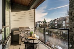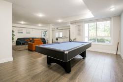 "THE GUILDFORD" Welcome to this immaculate 2 Bedroom, 1 Bath upper-floor corner unit in the heart of Guildford! Boasting a desirable South-facing exposure, this home is flooded with natural light through large windows. Well-kept and move-in ready, it features laminate flooring throughout, an in-suite washer and dryer, and a wonderful kitchen with quartz countertops and stainless steel appliances. A rare bonus: this home includes 2 side-by-side parking stalls and a storage locker. Location is everything! You are steps from Guildford Town Center, T&T, restaurants, and transit, with easy Highway 1 access. The building offers great amenities, including a social room with a pool table and party area. Don't miss this gem!
