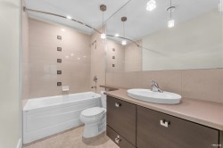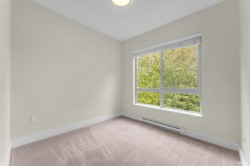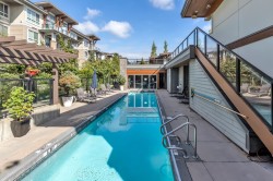 Immaculately kept 2-bed 2-bath in sought-after Salus built by reputable Adera. Facing the quiet side, this 810 sqft home offers 9' ceilings, well-defined living and dining areas, a large kitchen with stone countertop & SS appliances (newer dishwasher and garburator). A fully covered 97 sqft balcony is perfect for year-round enjoyment. Salus is known for its incredible amenities including an Aqua Club, outdoor pool, steam room & sauna, lounge and recreation areas. Central location within minutes to Scottsdale Mall, Strawberry Mall, restaurants, banks, parks and more. One parking one locker included. Pet-friendly! INCREDIBLE VALUE. Call today for your private viewing!