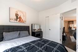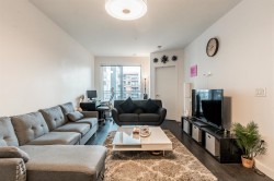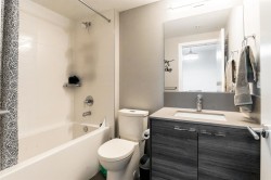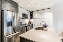 Welcome to this beautifully designed south-facing 1-bedroom suite, offering 628 sq. ft. of bright and open living space. Flooded with natural light through large windows and enhanced by high ceilings. The modern kitchen features sleek stainless steel appliances, elegant quartz countertops, and plenty of cabinetry for storage. Additional highlights include one secure parking stall and a convenient storage locker. A perfect combination of style, comfort, and functionality — ideal for first-time buyers or investors.