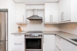 This rare corner, top-floor 2 bed, 2 bath condo offers over 1,100 sq ft of beautifully renovated living space and a layout you simply don’t find anymore. Wrapped in windows on all sides, this home is flooded with natural light and delivers an instant WOW factor the moment you walk in. Completely transformed from top to bottom, the home features a fully updated kitchen, two modern bathrooms, new flooring, and fresh paint throughout. The expansive open-concept living and dining area easily accommodates full-size furniture - perfect for entertaining or everyday comfort. A walk-in laundry room with extra storage adds rare functionality. Includes 1 parking stall and 1 storage locker. Pet-friendly building (2 pets allowed). If you’re looking for space, light, privacy, and a move-in-ready home.