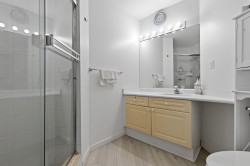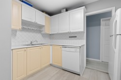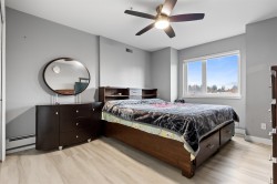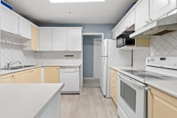 Rarely available top-floor corner unit featuring 9-foot ceilings, oversized rooms, and one of the largest floorplans in the building. This bright and private home offers 2 bedrooms and 2 bathrooms with a thoughtfully designed layout that includes a large laundry room, in-suite storage, and two separate eating areas, one which could be used as a 3rd bedroom or den. The spacious primary bedroom easily accommodates large bedroom furniture. Recent updates include new flooring, fresh paint, new ceiling fans, and modern glass shower doors, enhancing the home’s move-in-ready appeal. Can apply for 2nd CP parking (see Strata documents).Enjoy unbeatable convenience—walk to transit, shopping, restaurants, and all amenities. A truly exceptional opportunity!