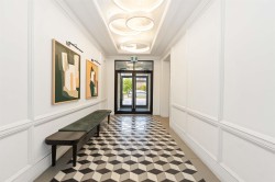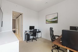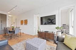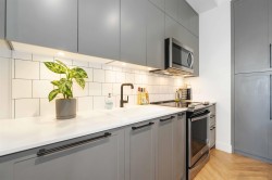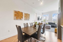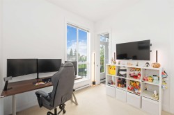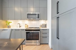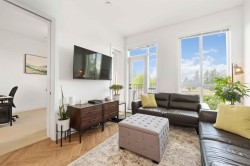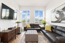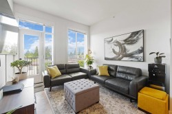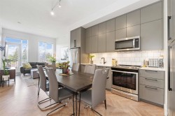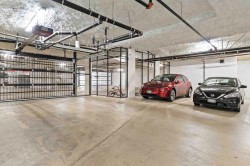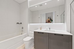 Welcome to the highly desirable GuildHouse II! This gorgeous top-floor 2 bedroom, 1.5 bathrooms unit is perfectly situated in the heart of Guildford. Built by the award-winning Mosaic Homes, this residence boasts 10' ceilings, a bright open-concept kitchen with sleek modern grey cabinetry, stylish black hardware, stainless steel appliances, and generous storage space. You'll love the elegant herringbone flooring that runs throughout. Both bedrooms are spacious, with the primary featuring a walk-through closet and a luxurious ensuite with a relaxing soaker tub and separate walk-in shower. Enjoy the convenience of TWO side-by-side parking spots right next to the elevator, plus TWO storage lockers. All of this in a walkable location close to transit, shopping, parks, and more.