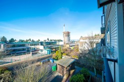 Welcome to Tamaron in Surrey’s Queen Mary Park! This spacious and well maintained one bedroom, one bath condo boasts beautiful mountain views. Features include 9' ceilings, gas fireplace, laminate flooring throughout, open kitchen with lots of counterspace and extended breakfast bar. Enjoy the exercise room, clubhouse with big screen TV and also a guest suite. Central location is steps away from transit, shopping, schools, parks, recreation and much more. Don't miss this one! No presentation of offers until 16 FEB, 2026 AT 3PM.