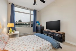 TOP-FLOOR CONDO WITH INCREDIBLE CITY VIEWS! Property Highlights-1 Bedroom, 1 Parking Spot, 1 Storage Locker. Spacious & Bright Layout with Ample Room for Furniture. High-End Finishes: Walnut Cabinetry & Stainless Steel Appliances, Granite Countertops & Modern Fixtures, Gas Stove for Gourmet Cooking & Private Balcony with Stunning Mountain Views—Perfect for BBQs! Building Amenities like Gym & Clubhouse for Gatherings. Steps to SkyTrain, Simon Fraser University, Central City Mall, Holland Park & More! Stay tuned for details. Contact now to schedule & secure this stunning top-floor condo! Parking Stall#101 & Storage Locker#93.**Easy Showing Pls TB**