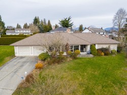 Soak in breathtaking mountain and valley views from this beautifully maintained rancher bungalow, offering fully accessible one level living on a generous 14,089 sq ft lot. The tastefully updated kitchen features granite countertops, stainless steel appliances, abundant storage, and a bright skylight. Cozy up by one of two gas fireplaces, or retreat to the spacious primary bedroom with stunning views and a 3 piece ensuite with a large accessible walk in shower. Enjoy a sprawling backyard with an accessible patio and deck, complete with an inground sprinkler system and space for kids to play. EV charger, double garage, and ample driveway parking add everyday convenience. Truly one of a kind and a must see gem.
