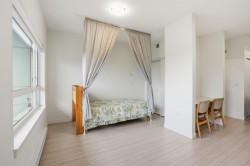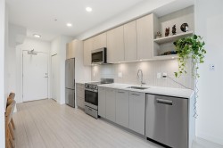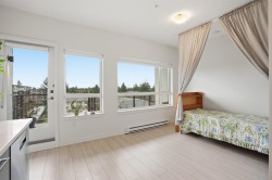 Welcome to a beautiful and bright centrally located studio unit in heart of North Surrey featuring one bathroom, open-concept kitchen layout with quartz countertops, a built-in nook, 8-foot ceilings, in-suite laundry, and a large balcony for fresh air and good view. Amenities include a party room, barbecue area, and playground, gym, lounge. .Just minutes away from the SkyTrain and 15 to 20 minutes walking distance to Elementary/High School. Very easy access to the Patullo Bridge and Highway 1. OPEN HOUSE SUN (2-4).