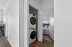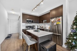 Top Floor Living at Kings Landing! Built in 2021 by the highly reputable Dawson & Sawyer, this stunning 2-bedroom, 2-bathroom plus den penthouse-level home offers the perfect blend of style and functionality. Enjoy an open-concept layout featuring premium stainless steel appliances and a versatile den perfect for a home office or extra storage. Situated in a prime, central location, you are steps away from transit, lush parks, and top-tier dining. Experience the peace of mind that comes with a newer build and the privacy of being on the top floor.