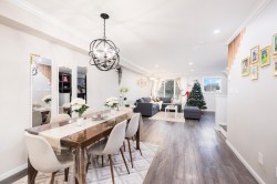 Welcome to this fully renovated, street-level townhome in Sullivan Station, offering the rare convenience of a step-free front entrance plus a second entry from the backyard. Thoughtfully designed across 1,371 sq. ft., this three-level townhome in Surrey features a bright open-concept main floor highlighted by granite waterfall countertops and a stunning custom walnut wall unit. Upstairs, enjoy three bedrooms, including a spacious primary, two bathrooms, and bedroom-level laundry for everyday ease. Residents enjoy resort-style amenities including a pool, recreation centre, theatre, indoor hockey, billiards, exercise facility, and two guest suites. Set in one of Surrey’s most family-friendly neighbourhoods, close to parks, schools, shopping, and commuter routes.