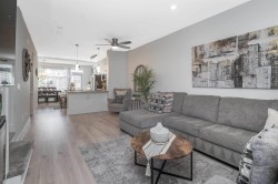 Welcome to UPTOWN, where style meets comfort in this BEAUTIFULLY UPDATED 4-bedroom, 3-bathroom townhome spanning nearly 1700sqft. Designed to impress, it feels like a SHOWHOME. Thoughtful upgrades include fresh paint, elegant light fixtures, granite counters, tile backsplash, wide plank vinyl flooring, new carpets, ALL-NEW SS appliances, refinished cabinets with modern hardware, custom millwork, new blinds, screens throughout, and concrete pavers in the private, fully fenced yard backing onto PERMANENT GREEN SPACE. Enjoy amenities including a clubhouse, gym, guest suite, and playground. Ideally located near parks, schools, shopping, transit, and commuting routes, with low strata fees.