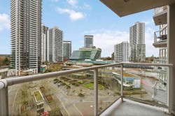 Bright and spacious 2-bedroom, 2-bathroom home with a desirable open-concept layout and unobstructed city and mountain views. Abundant natural light fills both the primary and second bedrooms. H/W included in maint fees. Exceptionally located steps to King George SkyTrain Station, Central City Shopping Mall, Holland Park, Surrey Memorial Hospital, SFU, and the future UBC campus. Enjoy true urban village living with shops, services, and cafés at your doorstep. Amenities include a sky lounge, fitness centre, and 24-hour concierge. Best price in building!
