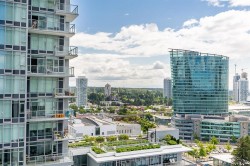 Surrey Central Ultra University West Village. Walk to Skytrain, Bus loops, Library, City Hall Recreation Centre, SFU, Shopping Mall, T&T and Restaurants. Enjoy EAST facing private home. Hardwood laminate floor with full height kitchen cabinets, quartz countertops & stainless steel appliance package. Access to amenities such as gym, rec room, meeting room and playground. Parking P2 #130. Extra Locker P3B # 7&8.