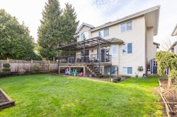 Best of Fleetwood with great mountain views! Impressive & meticulously maintained custom built 6 bdrm + den, 4 bath family home is awaiting you. Beautiful GRAND ENTRANCE & maple finished staircase greet you upon entry, featuring 17ft ceilings. Nicely updated kitchen & bthrms w/ granite counters, SS appliances & wonderful solid maple cabinets. Very functional layout perfect for families and entertaining. Gorgeous master suite, crown mouldings & large ensuite w/jetted tub. Fully finished 2 bdrm suite, plus huge theatre room. Air Conditioned. You'll love the beautifully landscaped backyard. Walk to Coast Meridian Elementary, Surrey Sport & Leisure Complex. Close to North Surrey & Fleetwood Park Secondary Schools.