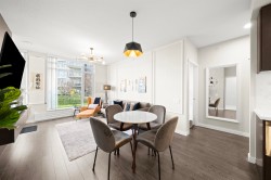 Your riverside dream starts here! First time on the market, this bright, ground-floor 2-bedroom plus den, 2-bath home in Vancouver’s River District is full of style, comfort, and functionality. Featuring 9’ ceilings, a modern kitchen with Bosch appliances, and a spacious primary bedroom with abundant storage, it’s designed for work, play, and everyday living. Bedrooms are thoughtfully separated for privacy, and the versatile den is perfect for a home office, creative space, or hobby area. Enjoy park and river views from your covered patio, just steps from scenic waterfront paths and retail shops. Ideal for first-time buyers, retirees, or those looking to downsize. Includes one parking stall. OPEN HOUSE JAN 31ST 11-1 FEB 1ST 2-4.