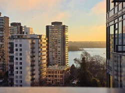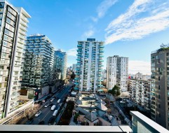 Welcome to ALEXANDRA, on a quiet West End street just steps away from Engish Bay surrounded by gourmet restaurants, shops and vibrant activities. City view home features a balcony with a strip of water view, a sleek linear kitchen, generous dining-living area, rich wood flooring, high-end Miele appliances, comfortable air conditioning, spa-inspired bathroom with a deep soaker tub & chrome fixture. A large walk-in closet offers ample storage, could easily convert to a cozy den. Enjoy the peace of mind of concierge & security services. Club Alexandra offers fitness centre and stylish lounge. This home comes with 1 parking and a large storage locker. Open house: Sat/Sun Feb 7/8, 3-5pm.