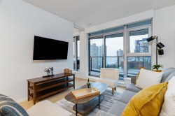 Welcome to The Pacific – 1BR+Den in the heart of Downtown Vancouver. Enjoy a designer Snaidero kitchen with Sub-Zero, Wolf & Miele appliances, and a marble bathroom with heated floors. Engineered hardwood and natural stone add refined touches, while your private balcony offers stunning city, mountain, and False Creek views. Steps to Yaletown, English Bay, and the seawall. Furnished and move-in ready! Open house: Dec 13(sat), 3pm-5pm.