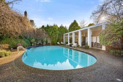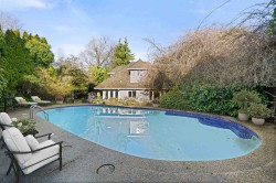 A rare offering in prestigious First Shaughnessy. This elegant coach house provides exceptional living space combined with extraordinary outdoor entertaining areas. Gracious principal rooms feature h/w floors, crown mouldings, and garden outlooks, while the well-appointed kitchen opens directly to outdoor entertaining areas. 3 generous bedrooms up include a sumptuous primary suite with marble ensuite and w/in closet, plus a finished lower level with rec-room, office, and wine room. Private grounds feature a swimming pool, covered cabana, and fully equipped glass enclosed gym, 3-piece pool bathroom, and storage. A detached garage with artist studio above, secure gated entry, and ample parking complete this exceptional offering.