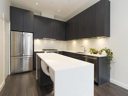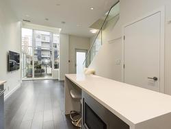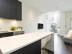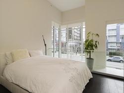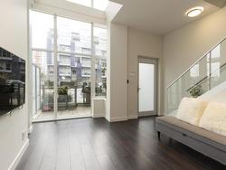 Modern loft style townhome located in trendy Olympic Village. Soar ceilings over 17 feet with floor to ceiling windows. Two levels, corner unit, south facing loaded with lots of natural lights. Large private south patio satisfies your garden appetite. Open concept, high end cabinetry, counter top, appliance, air condition, auto control window sheet upper. Building includes gym, party room and concierge. Close to shopping, transit sky train, False Creek sea wall. Close to Emily Carr university, Science World, and upcoming New St Paul's Hospital. Unique artistic style, you have to come to appreciate. 1 parking stall & 1 extra large storage locker are included.