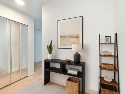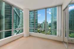 Welcome to The Residences on Georgia by renowned developer Westbank. This 2-bedroom, 2-bathroom plus den home offers 823 sq ft of well-designed living space with floor-to-ceiling windows showcasing stunning city views from every room. The layout separates the bedrooms from the main living area for added privacy, while the den is ideal for a home office or flex space. The kitchen features granite counters, stainless steel appliances, and ample storage. Enjoy 24-hour concierge, gym, secure parking, and storage locker. Rentals (30-day min) and pets allowed. Just steps to Robson Street, Stanley Park, Coal Harbour, and the Seawall. This is downtown living at its best! Photos have been digitally decluttered & virtually staged