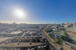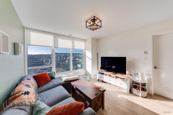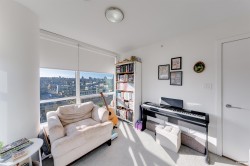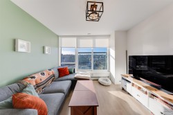 Spacious and functional 2-bed+Den in the heart of Olympic Village, offering stunning city, mountain and water views. This bright, open-concept residence is short term rental friendly and features floor-to ceiling windows, German wide-plank flooring, and sunny southwest exposure. This gourmet kitchen is equipped with high-gloss cabinetry, an induction cooktop, and stainless steel appliances. This generous primary suite includes a spa-inspired ensuite with double sinks, ample storage, and a relaxing soaker tube. Enjoy outdoor living on the sun-filled balcony, perfect for BBQs, Epic at West amenities include a fitness centre,8,500 sq.ft. rooftop patio, concierge, clubhouse, and dog spa. Steps to the Canada Line seawall, restaurants, and shops. Parking and storage included.