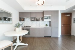 This exceptional 550 sqft 1 bed+den, air-conditioned unit offers a versatile layout. Designed with high-end finishes, this home includes in-suite laundry and a gourmet kitchen equipped with premium appliances and elegant stone countertops. Enjoy serene courtyard, water, and pool views from your private retreat, while benefiting from five-star building amenities, including concierge service and hotel-style conveniences. A perfect blend of sophistication, comfort, and functionality in one of Vancouver’s most sought-after addresses.