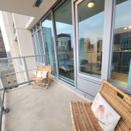 Downtown Vancouver - The Hudson Building Location: 610 Granville St, Downtown. Central location with Skytrain access inside the building and steps from the Business District & Waterfront. Unit: Immaculate, semi-furnished 500 sqft Studio + Den/Office on the 17th floor. Features a 50 sqft SE covered patio with sweeping City and Harbour views, perfect for morning sunrises. Inclusions: Queen wall bed, new Queen mattress/sheets, in-suite W/D, leather sofa, and laminate floors. Building Amenities: 24hr Concierge, Gym, Lounge/Games room, Keg Steakhouse, and Fitness World Gym (3000 sqft) on the 2nd floor. Notes: Pets considered with deposit. No parking included. (Can be rented in the building) Short-term available: 30 days minimum!
