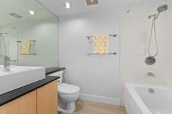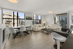 NOVA by BOSA in heart of Yaletown. This stunning corner 2 Bed + 2 Bath + Den + Flex offers over 1,050 SF of luxurious urban living. An entertainer’s dream with an open kitchen, 10’ island, gas cooktop & stainless appliances. Bright, spacious living & dining fit house-size furniture and open to a covered balcony with sunny water views for year-round use. Bedrooms are separated for privacy, with a spa-like ensuite, inspiring den & large flex/pantry. Enjoy great amenities—gym, yoga space, hot tub, steam room, lounge, guest suite & courtyard. Prime Yaletown location close to Robson, Granville, Costco, T&T, Seawall, Stadium & Arena. Includes 1 parking & 1 locker.