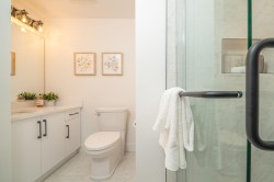This spacious brand new back half duplex Ready to move in, a team recognized for quality & attention to detail. Designed with your family in mind, this modern home has a great floorplan & inspire interiors. The main offers a professional grade kitchen w/ skinny shaker cabinets Wolf/ KitchenAid appliance package feat 30" stand up fridge/ freezer & 4 burner Wolf gas range. Thoughtfully designed with 4 bedrooms 3 bedrooms up has 2 bedrooms 1 bathrooms inc primary ensuite with seamless shower. Down has the 2 bedroom. full bath & laundry - perfect for teens/ guests/ home office. Out back is a deck for your bbq and fenced yard. 10' ceilings, radiant in-floor heat, hardwood throughout, A/C, This beauty is move-in ready and sure too impress. Come see! Open House Sat. 2 pm to 4:15 Pm