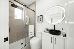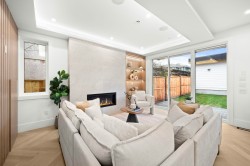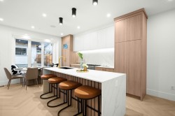 Welcome to this stunning, brand-new 3-bed, 3.5-bath half duplex built by Solid Foundation Homes and designed by LUXE Design located in the heart of Grandview-Woodland. This beautifully crafted home features an open-concept design with a spacious main floor, offering generous living and dining areas ideal for both everyday living and entertaining. The gourmet kitchen is equipped with premium Fisher & Paykel appliances, a gas range, and sleek quartz countertops. Enjoy year-round comfort with central A/C, an HRV system, and an energy-efficient heat pump. Additional features include full-home speakers, integrated surveillance cameras, and a private one-car garage. Ideally situated just steps from Trout Lake, Commercial Drive, schools, and shopping, with Downtown Vancouver only a 7-min drive