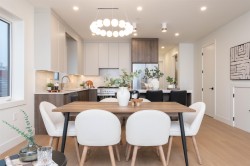 Brand new 4-bedroom family home at Pender Mews, offering space and design rarely found in today’s East Vancouver townhomes and duplexes. This residence features high-end flooring, 9-foot ceilings, custom millwork, LED lighting, and an electric fireplace. The kitchen includes gas cooking, quartz countertops, a large pantry, and premium Fisher & Paykel appliances. Upstairs showcases exceptionally large bedrooms, including a vaulted primary retreat with feature wainscoting, walk-in closet, and a spa-inspired ensuite with tiled shower and bench. Additional highlights include a heat pump with A/C, HRV, EV-ready parking, and private outdoor space. Steps to Hastings amenities, parks, schools, transit, and bike routes. Open House Sat & Sun, 31/1, 2-4pm.