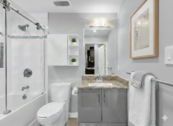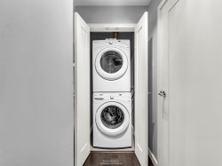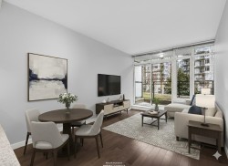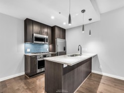 Welcome to THE ONE, a pet friendly concrete building in the heart of Olympic Village. This fantastic 1 bedroom plus flex space offers one of the best layouts you will find! In PRISTINE condition, this unit is better than brand new! It featuring hardwood floors, 9ft ceilings in bdrm/living area, modern finishes including Bosch & Fisher Paykel appliances, gas cooktop, B/I oven & microwave, granite counters, window screens and a 53 sq ft balcony. New Paint throughout as well as new carpeting in bedroom plus B/I in closet organizer. Residents can enjoy premium amenities including a rooftop pool, hot tub, fitness centre, lounge and outdoor garden. Walk to restaurants, coffee shops, shopping amenities and skytrain! Comes with 1 parking, storage locker & bike storage & EV access in building.