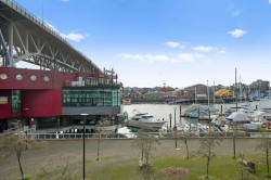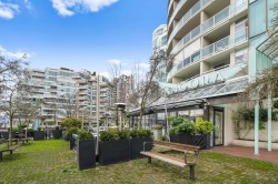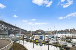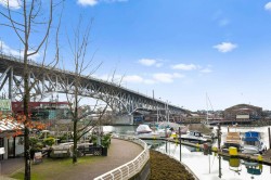 WATERFRONT LIVING on False Creek, this unique and rarely available 2-level, 3 BR, 1453 sq.ft suite is perched along the edge of the seawall with stunning water VIEWS!! Open planned main floor offering entertaining size living space, hardwood floors, 1 BR & renovated spa bath, wonderful balcony to enjoy all year round. 2 more generous size BR’s down with bath with shower, access out from both BR’s to the private 27' patio. The Admiralty is a well maintained, secure & exclusive waterfront building of only 44 homes, 24 hr concierge, 2 Parking, 2 Storage, rentals allowed (6 mos min), sorry no pets, prepaid Crown lease to 2084. Experience this resort style living, walk along the seawall or watch the activity of False Creek and across to Granville Island!!