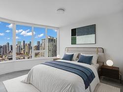 Introducing The Smithe by BOFFO: A Masterpiece in Urban Living. This exquisite 3-bed, 3-bath residence, designed by Trepp Design, is located on the 21st floor, offering exclusive views of BC Place and the city, which are only accessible from the 20th floor and above. Spanning 1,434 sqft, it features art-inspired finishes, marble-tiled floors, Savant smart home automation, Nest thermostats, air conditioning, Italian custom cabinetry, built-in wardrobe systems with activated lighting, premium Wolf-Sub Zero appliances, including a wine fridge. Amenities include a 24-hour concierge, two EV parking, over 4,000 sqft of lounges, a workshop, and a fitness facility. Just steps from restaurants, grocery stores, The Smithe offers unmatched convenience.
