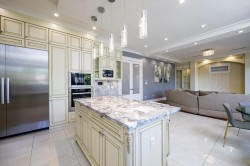 Custom built luxury house located in Quilchena. The property is 60x160=7800 sf on a beautiful tree lined street. The home offers over 5,300 sf of spacious floor plan w/superior construction & finest finishing. Main floor features engineered H/W flooring, grand chandelier in the foyer, high ceiling, delightful gourmet kitchen & wok kitchen equipped w/high end Miele appliances, custom cabinets, Euroline windows A/C, HRV, & security system, 4 roomy ensuited bdrms up. Master bdrm w/balcony & mtn view. Versatile bsmt w/a huge rec room w/temperature controlled wine cellar, state of the art theatre rm, sauna/steam rm & 1 guest bdrm 3 car garage & beautiful landscaping. Quichena Elementry, Point Grey Secondary catchment.