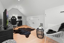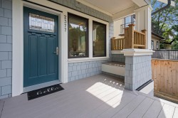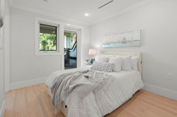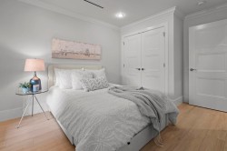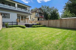 GST INCLUDED. This boutique strata triplex back unit is ideally located within 800m of the future Arbutus SkyTrain Station. Completed in 2024 and lightly lived in, it offers 2 bedrooms plus a large flex and 4 full bathrooms. With its own window and bath, the flex works perfectly as a guest suite, home office, or optional third bedroom. Both primary bedrooms open onto a sunny balcony overlooking a 900 sq ft private backyard, creating a rare indoor outdoor living experience for coffee mornings and evening dining. The chef inspired kitchen features quartz countertops, custom cabinetry, Fisher and Paykel and LG appliances, and a wine fridge. Enjoy year round comfort with radiant heating, air conditioning, and HRV. EV ready parking, storage, and bike locker included. Cheat sheet available.