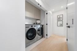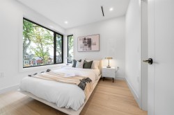 Experience modern luxury in this newly built front half-duplex, ideally situated in the highly sought-after Hastings-Sunrise neighbourhood, just minutes from Downtown Vancouver and Highway 1. This thoughtfully designed 3-bedroom, 4-bath residence offers a bright open-concept layout, quality craftsmanship by reputable builders, and contemporary finishes throughout. Features include a premium appliance package, custom millwork, central air conditioning, heat pump, HRV system, security system, EV-ready carport, and fully landscaped outdoor space on a sundrenched corner lot—perfect for family living. Enjoy convenient access to parks, schools, shopping, and transit. A rare opportunity to own a luxurious, low-maintenance home in one of Vancouver’s most connected and family-friendly communities.
