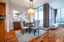 Don't miss out these gorgeous views from this 1356 sq.ft. 2 BDRM & DEN OCEAN FRONT residence located in Coal Harbour at the Shaw Tower. Many features include hardwood floors throughout, overheight ceilings with A/C, top of the line S/S app liance package with granite counter tops in kitchen and bathrooms. Access to balcony is from living room and master bedroom offering stunning views to the ocean, Canada Place and the Vancouver Convention Centre. Shaw Tower offers some of the best facilities including 24 hr. concierge service, restricted floor access, daycare facilities, amazing fitness center, executive boardroom, movie theatre and much more. 1 parking + 1 storage. More info on agents website. Great price for views & location!**