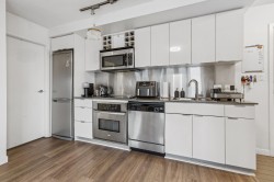 Spacious NW facing 1 BED & FLEX w/balcony home offers over 600 SF of bright urban living w/gorgeous city views. Unit is very well kept inside, also new floors, washer/dryer. Sleek linear kitchen w/stainless steel appls/backsplash & smooth cooktop. Full height windows provide lovely natural lighting or have a seat on your balcony to watch the sunset over the city. TV TOWER by Concord Pacific has concierge, cardio/weight rooms, steam/hot tub, meeting rm, party lounge w/pool table & theatre. PRIME D/T CORE - steps to the stadiums, Seawall, restaurants, transit, library & new Amazon offices & City Market. Excellent city home to live or invest in. 1 parking.