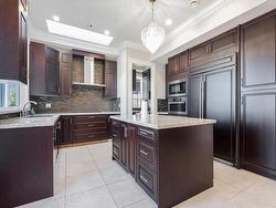 Elegant home in Quilchena's heart offers stunning views. Tailored with superior craftsmanship, it features three ensuite bedrooms on the upper floor overlooking the Prince of Wales Park and mountains. The landscaped ground highlight a peaceful pond. The modern kitchen showcases a granite island and top-tier Miele appliances, accompanied by a six burner gas cooktop and potent Thermador hood. Interior finishes include premium wall paper, blinds, stone flooring, and a unique entrance pattern. Amenities encompass sensor bathroom lighting, a jacuzzi, radiant heating, advanced ventilation, air conditioning, and a security system.