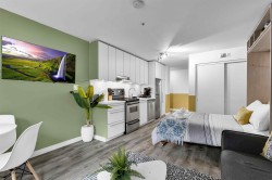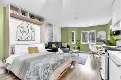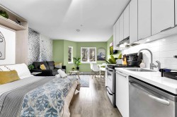 Welcome to 21 Doors in the heart of Gastown - an ideal opportunity to get into the market or generate rental income. This concrete building was fully modernized in 2011 and allows short-term rentals including Airbnb offering excellent flexibility. The suite features an efficient open layout with in-suite laundry, stainless steel appliances, ample storage, and a spacious bathroom. Extensively renovated in May 2023 with new flooring, fresh paint, stylish wallpaper, new bathroom vanity, and upgraded lighting and fixtures throughout. Fully furnished with premium new furniture included making this a true turn-key opportunity. Enjoy the communal inner courtyard with BBQ and dining area. Steps to Gastown’s top restaurants, cafés, shopping and urban living at your doorstep. Book your showing now!