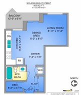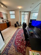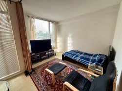 Welcome to this bright, functional and well maintained studio suite with a DEN, perfectly situated on the quiet side of the building. With a sunny balcony overlooking the courtyard and large windows. The layout is versatile and can easily be converted into a one bedroom if desired. Features a spacious kitchen and a full size living room to match your lifestyle needs. The den offers the ideal home office, walk-in closet or extra storage space. Additional conveniences include in-suite laundry, 1 parking, 1 locker and access to a fully equipped gym. Enjoy unbeatable convenience with the public library, supermarket and shops right downstairs. Centrally located with easy access to Metrotown, Downtown. Don't miss this fantastic opportunity!