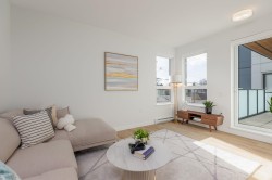 Clarendon Heights - Nestled on a quiet street just off Kingsway, find a collection of 47 boutique residences with Vancouver address. Sleek yet inviting, the building exterior is a perfect balance of modern architecture with warm accents of brick and wood paneling. Complimented by Scandinavian inspired interior and exclusive rooftop amenities, it is designed to elevate the urban lifestyle. Over 6000 sqft roof top garden/amenity. This home offers smart, refined living spaces perfect for any family at any stage of life.