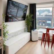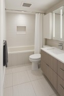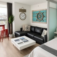 Perfect starter home for First Time Buyers, Investment or Pied-a-Terre in Olympic Village. Welcome to a vibrant and effortless waterfront lifestyle in the sought after Olympic Village. Just steps to the seawall, SkyTrain, Canada Line, UBC bus, parks, marine recreation, and the Village Plaza which includes Urban Fare. London Drugs, shops and eateries. Downtown is only minutes away. This modern, open-plan junior one bedroom plus den is both stylish and versatile. The den is customized as a walk-in closet/storage space but could easily be transformed into an office. Interior features include sleek Euro appliances, induction cooktop, built-in oven, front loading washer/dryer, quartz Carrera counters and backsplash, wide-plank laminate flooring, and contemporary sliding bedroom doors.