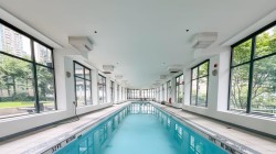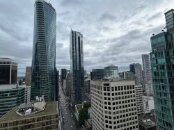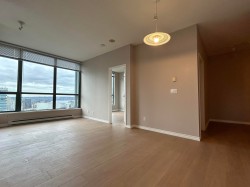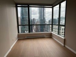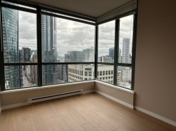 SE corner 2 bedroom, 2 bath condo on the 31st floor of the "VENUE" building, featuring stunning views of downtown and English Bay. Situated in the prime Coal Harbour location, this well-designed open-plan unit boasts 9-foot ceilings, separated bedrooms, a double-sided gas fireplace, deluxe finishes, gas cooktop. freshly painted and brand new laminate floor. Comes with 1 parking space and 1 storage locker. The building offers a 24-hour concierge, Resident Manager, indoor swimming pool, hot tub, sauna, ballroom, party room, library, media room, 2 guest suites, and ample visitor parking. Steps to the Seawall, Stanley Park, downtown financial core, and the shops and restaurants along Robson, Alberni, and Burrard Street, as well as Skytrain and Canada Line stations. Good value, well kept.